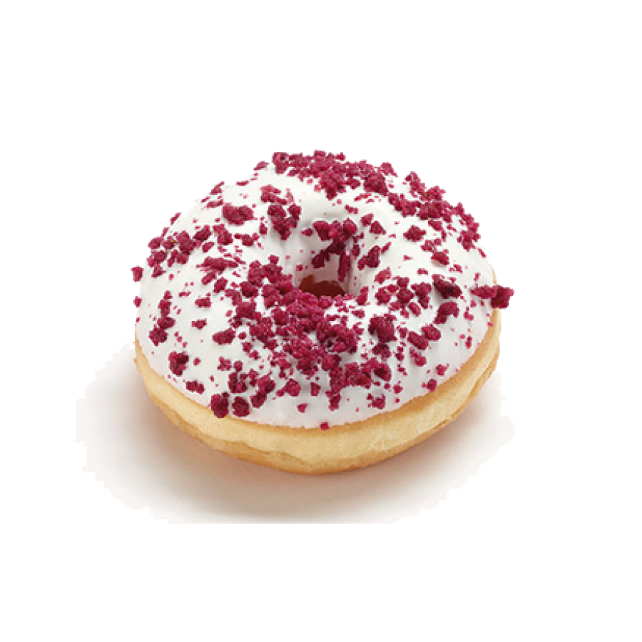 Printēt Rauga mīklas virtulis ar krēmīgā siera pildījumu, kura virsma ir pārklāta ar baltu glazūru un sarkano augļu drumstalām.